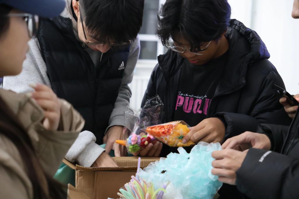 各队伍完成作品后集中展示,形态各异的小树装饰吸引众多师生驻足点赞,主办方拍摄大合照定格温暖瞬间。