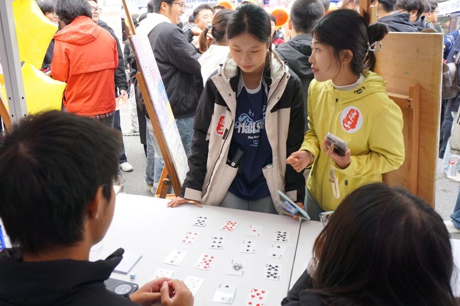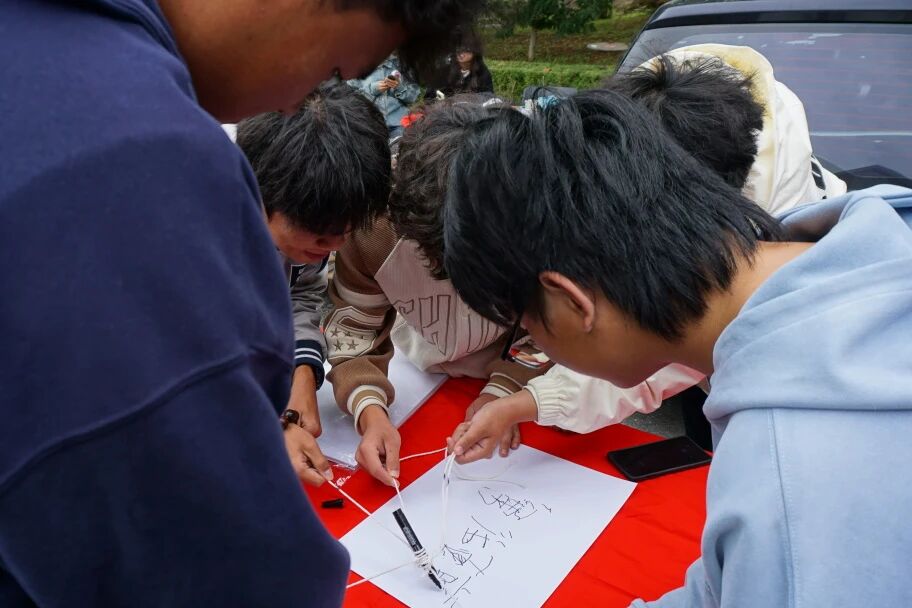 众人分工协作,有人搬来桌椅、运好道具箱,脚步匆匆却有序;有人拿着提前绑好的气球串,抬手将绳头稳稳系在帐篷支架上。一串串彩球挂好,风拂过便轻轻晃动,道具也按游戏分类摆妥,原本空旷的地方渐渐亮起来,筹备的热闹里藏着期待。
