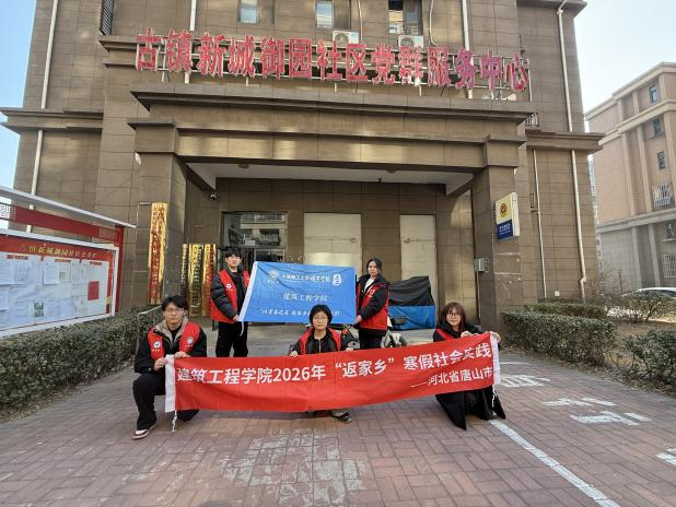 青春赴乡约,实践暖唐山。建筑工程学院“以青春之名,赴家乡之约”寒假社会实践团唐山实践团由五名青年学子共同组成。大家心系家乡发展,主动参与唐山本地社会实践,围绕基层实际需求,以志愿服务的形式走进社区一线,开展医疗辅助、社区服务、基层探访等各类便民活动。